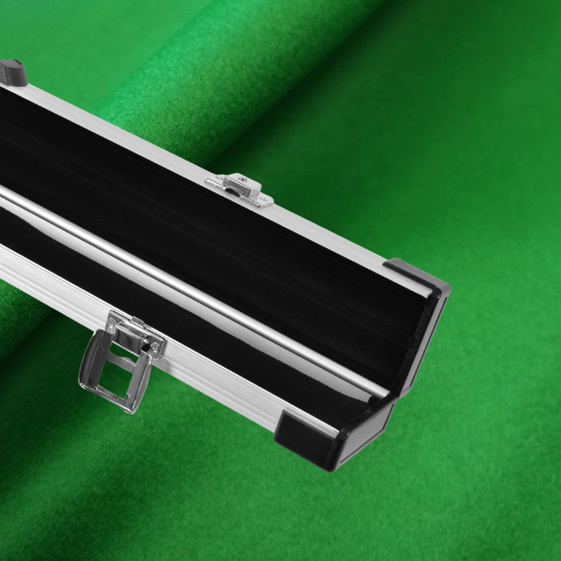 This aluminium construction case offers maximum protection for your cue. The hinge is an integral part of the shape of the case making it extremely robust. The high quality chrome catches also lock and are supplied with two keys. The interior is black flocked foam to hold the cue securely in place.