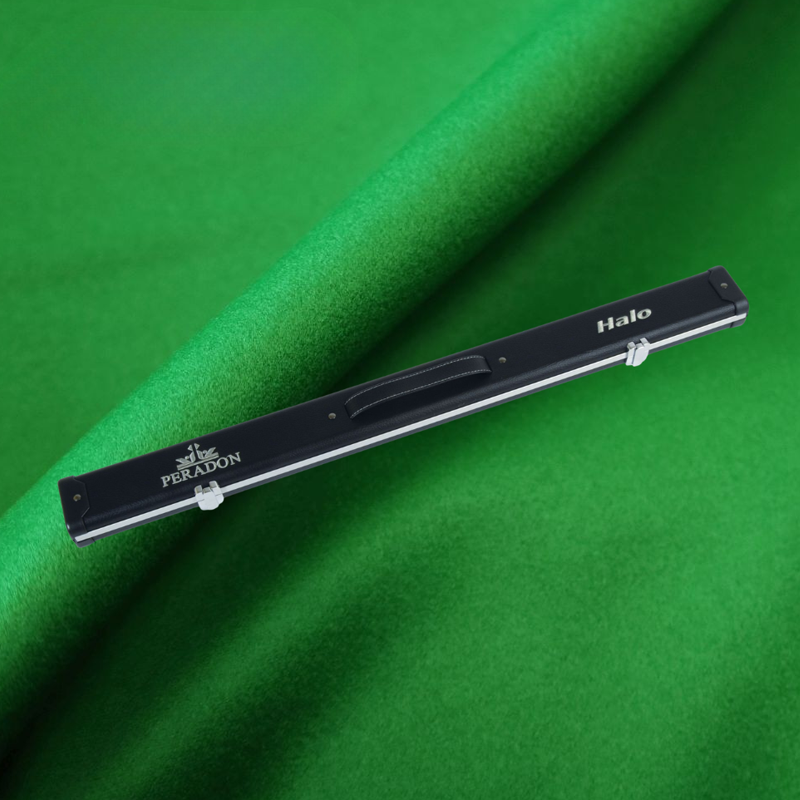 Halo cases are of aluminium construction and offer both maximum cue protection and superb looks. The exterior is upholstered with hard wearing leather look material to create a very attractive cue case. The hinge is an integral part of the shape of the case making it extremely robust. The catches are of the highest quality with a highly polished chrome finish. The interior features a deluxe foam to hold the cue securely in place.